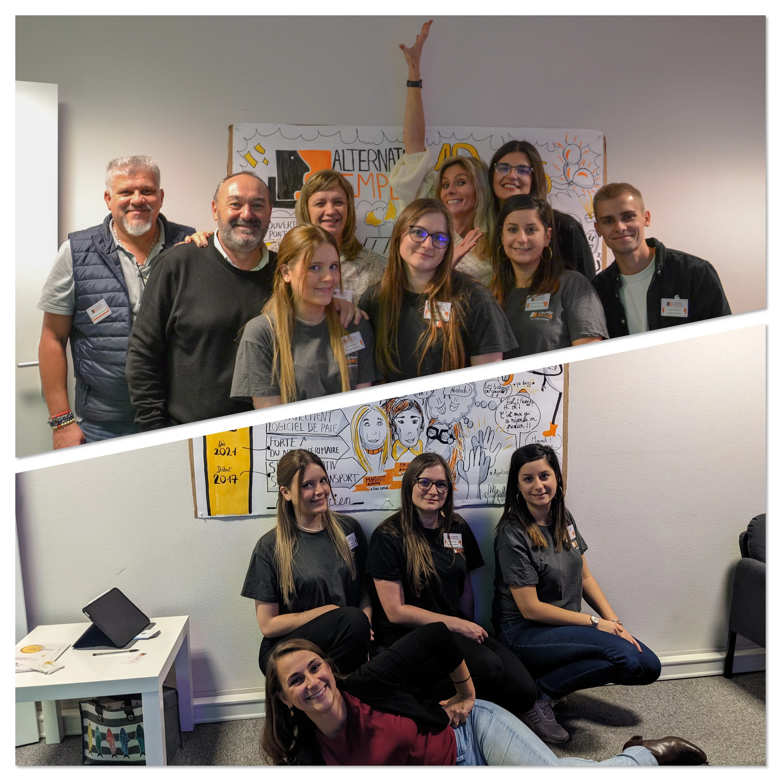 Le tout dans une palette visuelle harmonisée avec la charte graphique du groupe : tons orangés, éléments visuels existants et mise en avant du logo Alternativ’Emploi.